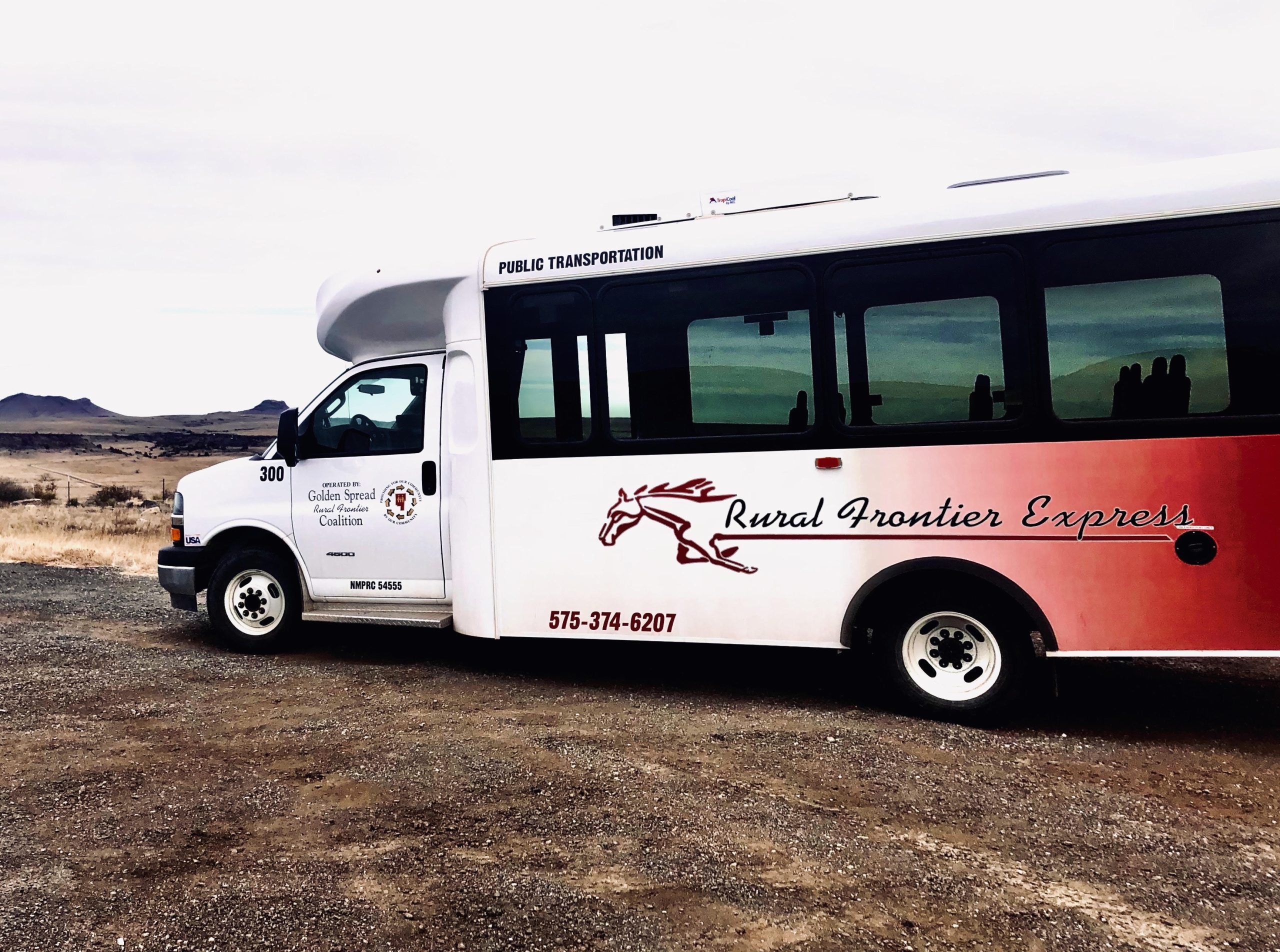 In 2003, Golden Spread Rural Frontier/Coalition ventured into the public transportation program with 2 vans to provide non-emergency transportation from Clayton, New Mexico to surrounding cities in New Mexico, Texas, Colorado and Oklahoma. Golden Spread has expanded the public transportation program to include 7 ADA handicap vans and 3 buses providing 11,332 rides, 144,804 miles and close to 8300 hours drive time in 2022.